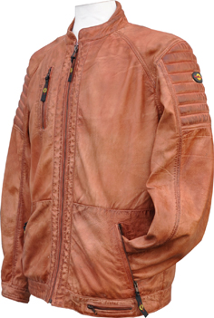 A lightweight, non armoured, leather jacket finished in distressed tan.